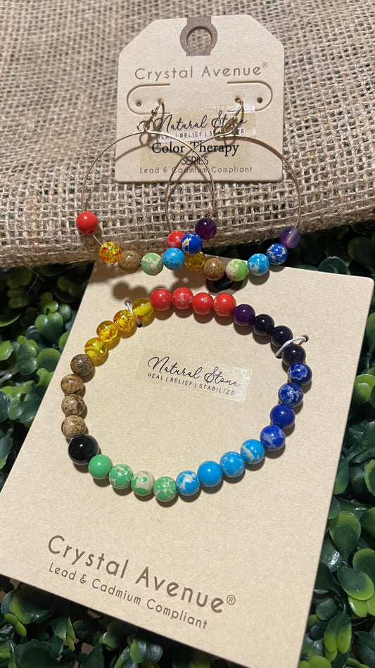 Natural Gemstones & Acrylic Bracelets & Earrings Set